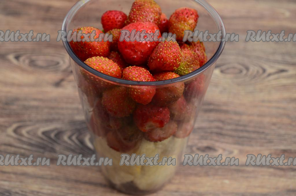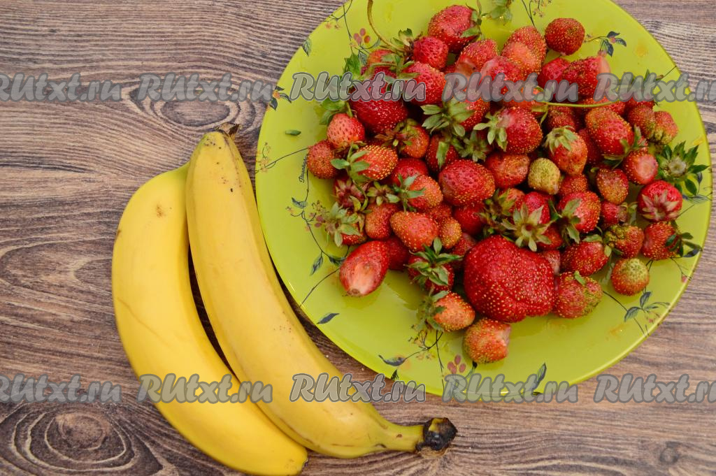 Подготовить продукты. Бананы желательно брать сладкие, спелые или немного даже переспелые. Клубнику тоже лучше взять сладкую.