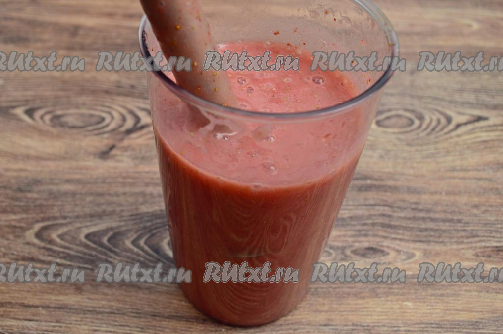 Всего у меня получилось около 700 миллилитров клубнично-бананового пюре.
