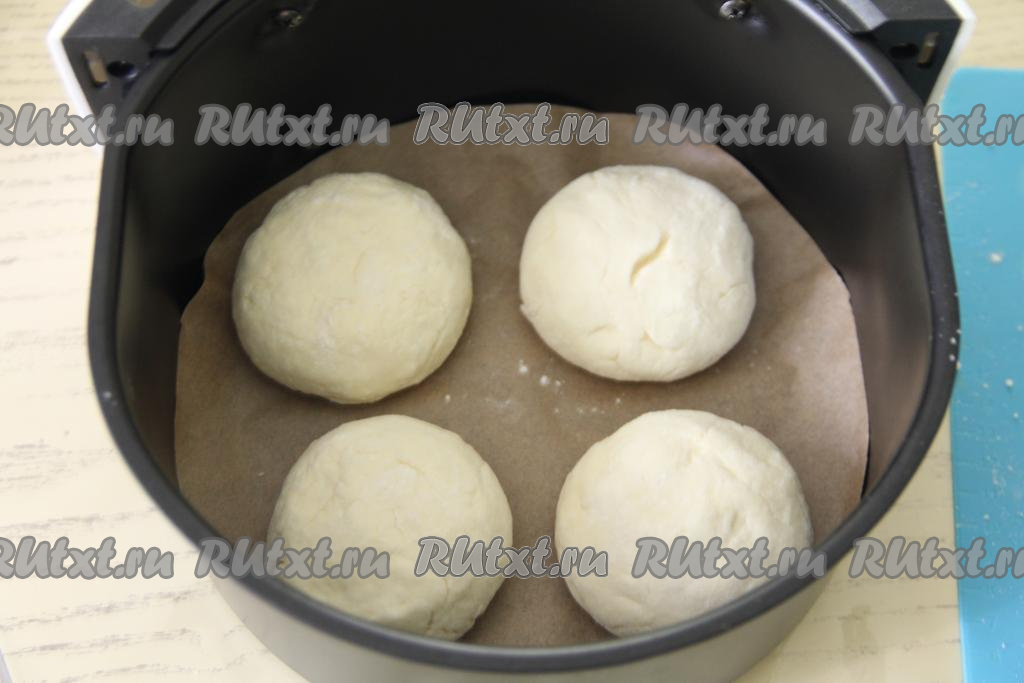 Дно чаши для аэрогриля застелить пергаментом, выложить сырники. У меня все сырники сразу не поместились, я выложила 4 штуки.