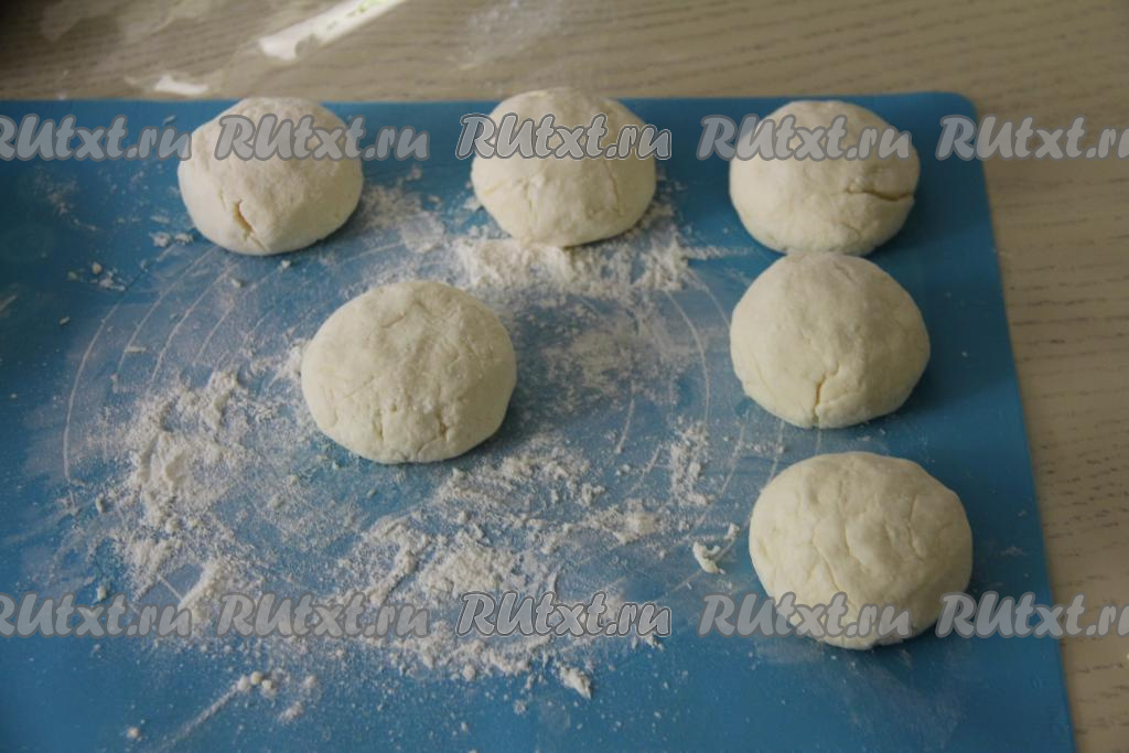 Замешанное творожное тесто для сырников разделить на 6 равных частей (то есть мы будем готовить 6 сырников).