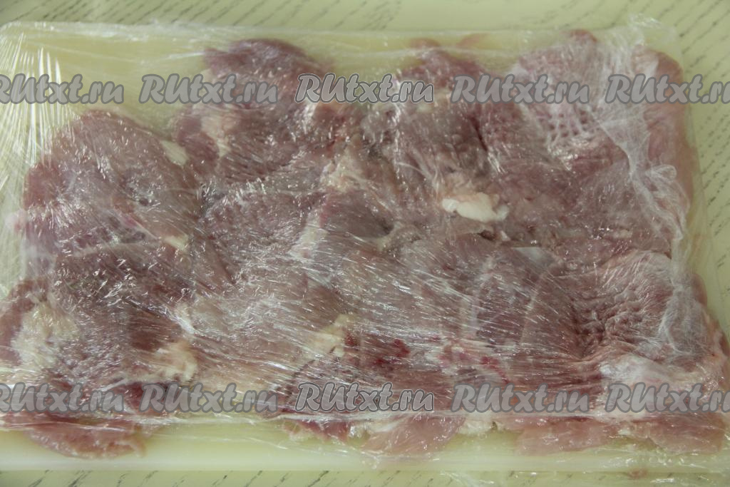Выложить филе бёдер на разделочную доску, накрыть пищевой пленкой. Отбить мясо с двух сторон с помощью кулинарного молоточка до толщины ориентировочно 7 миллиметров.
