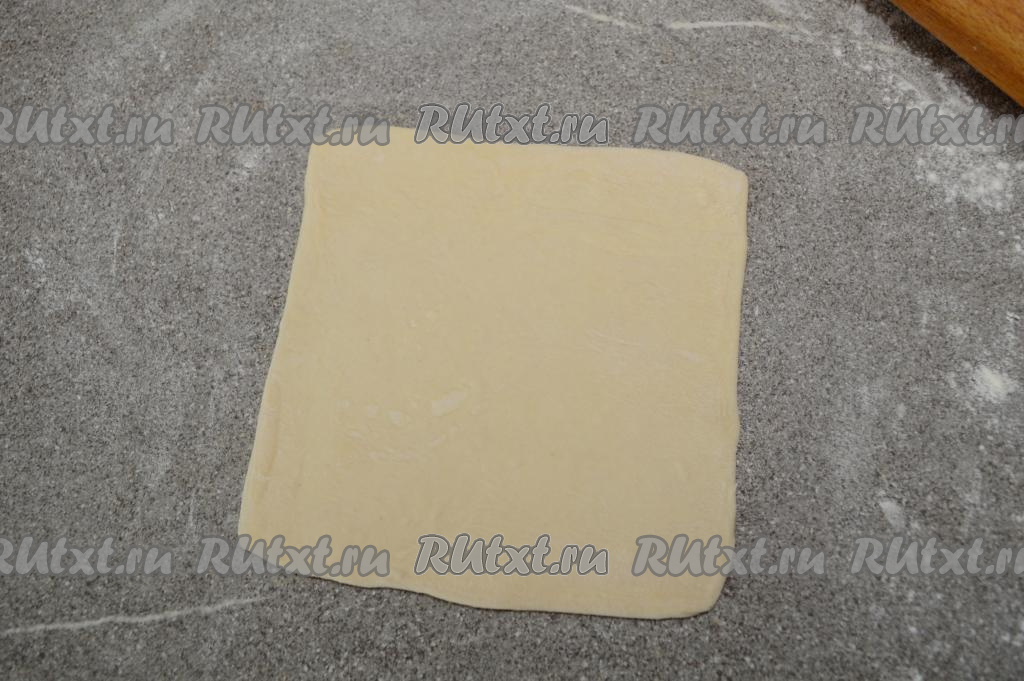 Каждую часть теста раскатать в квадрат. Я раскатала в квадраты со стороной 14 сантиметров.