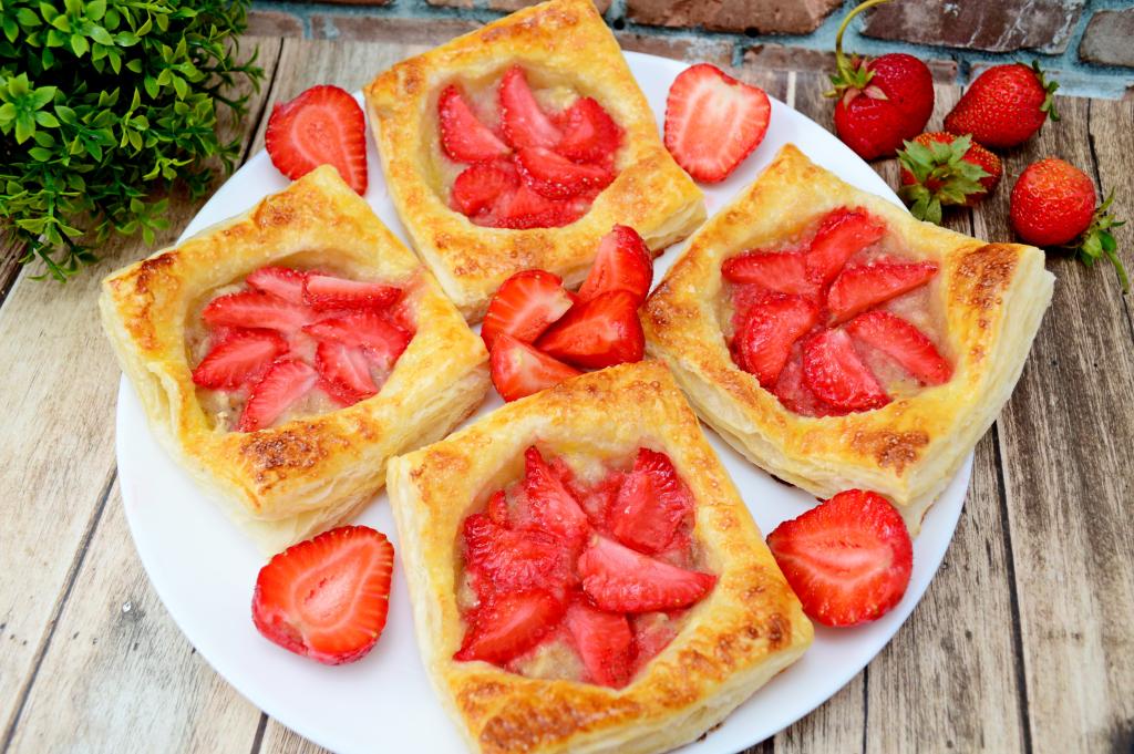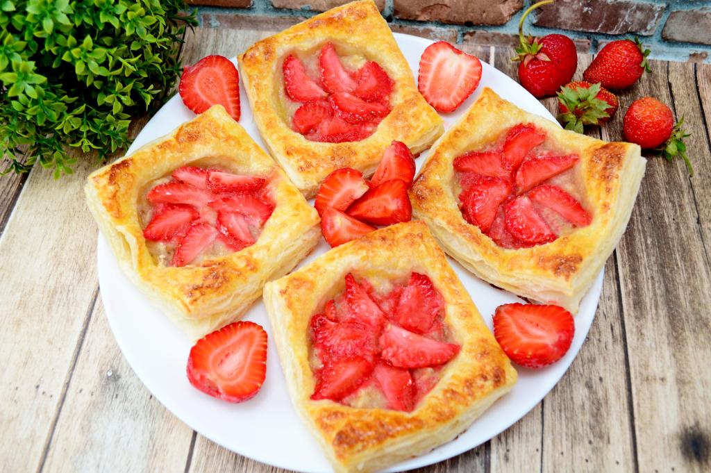 Готовые слойки можно подать к столу и тёплыми, и полностью остывшими. Банан и клубника отлично гармонируют со слоёным тестом, поэтому эта простая выпечка получается очень вкусной!