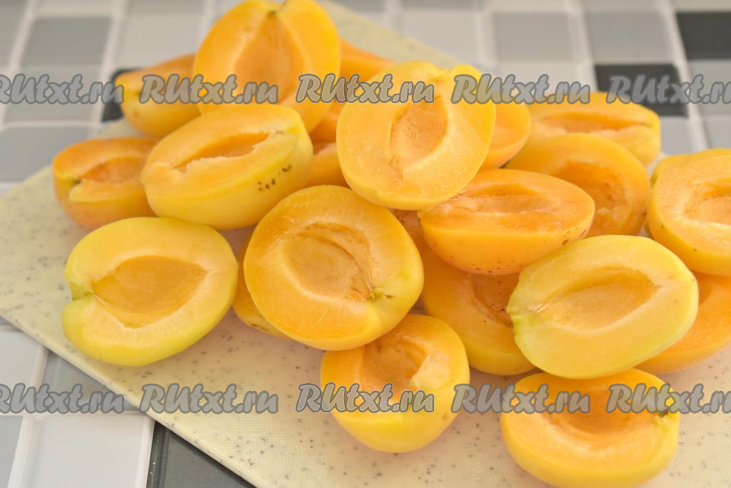 Моем абрикосы, разрезаем пополам, удаляем косточки.