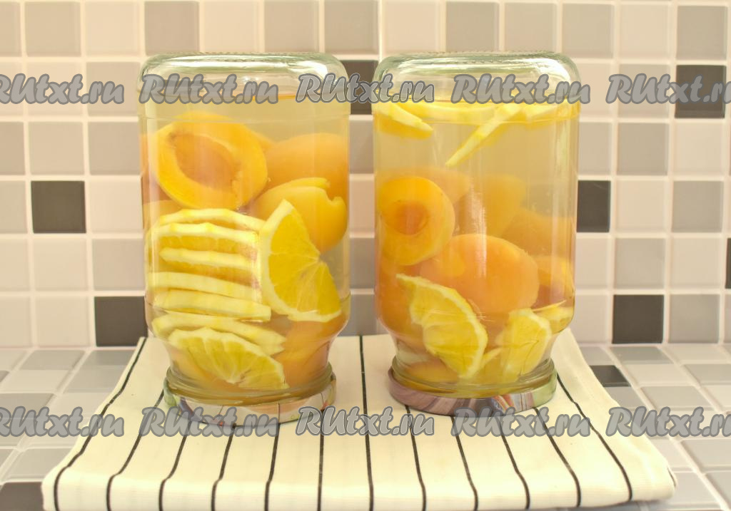Снимаем сироп с огня и сразу разливаем его по банкам с абрикосами и апельсинами, заполняя баночки до самого верха. Банки с компотом закручиваем (или закатываем) крышками. Проверяем банки на герметичность, для этого кладём их на бок и прокатываем по столу. Банки с компотом ставим дном вверх, укутываем в плед (или одеяло), оставляем до полного остывания (ориентировочно на сутки).