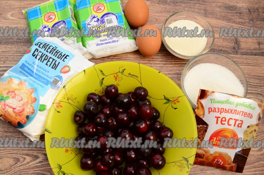 Подготовить продукты. Творог можно взять любой жирности, в этот раз я использовала жирностью 5%. Черешню перебрать, промыть и немного обсушить.