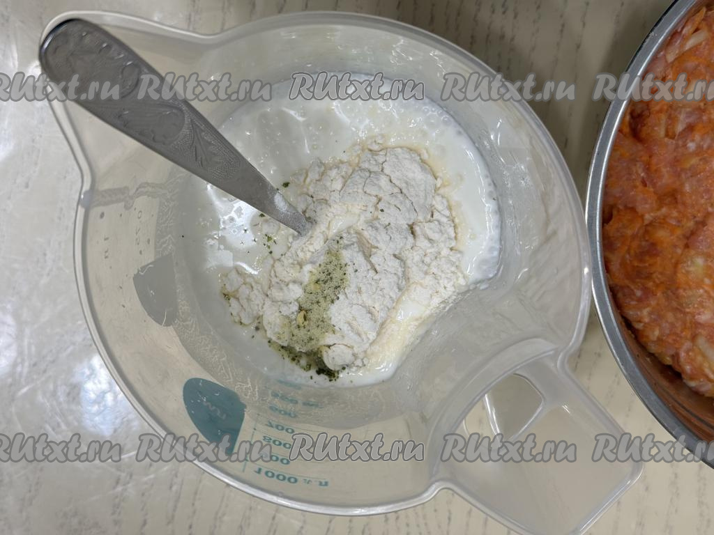 Для приготовления сметанного соуса в отдельной ёмкости нужно соединить воду и сметану, всыпать соль и специи по вкусу, перемешать. Добавить муку, перемешать до однородности и сметанный соус для голубцов готов.