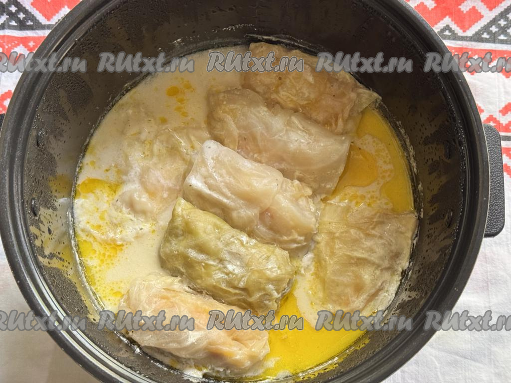 Переложить голубцы из чаши мультиварки на тарелку, полить сметанным соусом, в котором они тушились, и в горячем виде подать к столу.