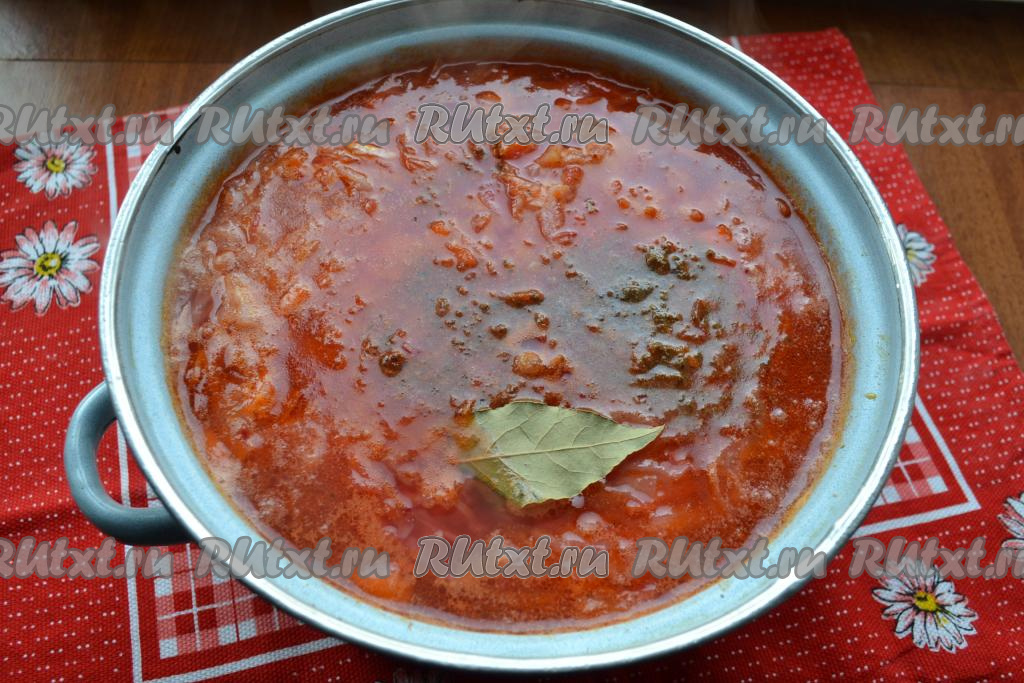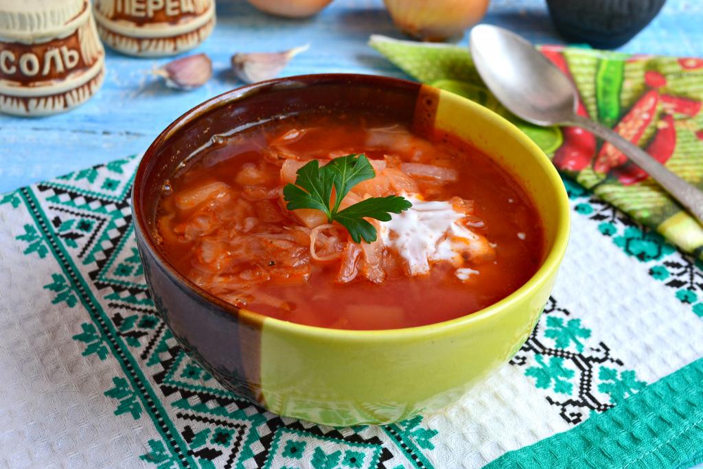 Рецептов борща существует множество. Это первое блюдо готовят с мясом, птицей, грибами, фасолью, просто с овощами и даже с рыбой. Я хочу предложить вам рецепт приготовления вкусного, наваристого, сытного борща без мяса с добавлением в зажарку томатной пасты. Это вегетарианское первое блюдо, сваренное с добавлением свежей капусты и свеклы, получается очень удачным. Этот борщ отлично разнообразит меню в дни Поста. Но и в остальные дни он прекрасно насытит вас и ваших близких!