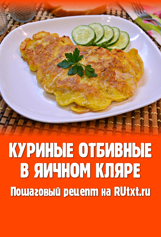 Куриные отбивные, приготовленные в яичном кляре, - простое, но очень аппетитное и вкусное блюдо, которое можно подать и на обед, и на ужин. Рецепт несложный, а результат всегда удачный. Кляр как бы запечатывает мясо, не давая мясным сокам выходить наружу, поэтому куриное филе получается очень нежным и сочным. При подаче это блюдо можно дополнить практически любым гарниром.