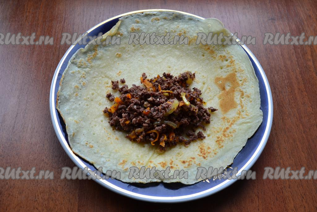 Выложить на каждый блин по 1-2 столовых ложки начинки из сердца.