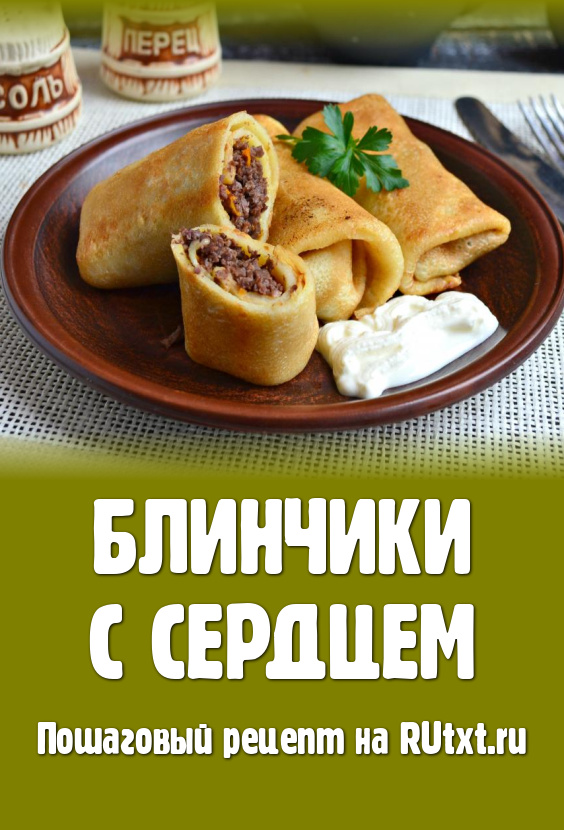 Блинчики с сердцем - это вкуснейшее блюдо, которое отлично подойдет к завтраку. Блины получаются замечательными, подать их можно со сметаной. Я использовала свиное сердце, можно - говяжье. Такие блинчики можно заморозить впрок, а перед подачей разогреть в микроволновке или на сковороде. Обязательно попробуйте это простое и необычайно вкусное блюдо!