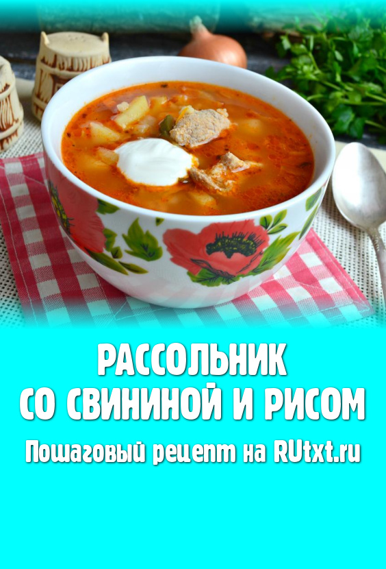 Очень вкусный и сытный рассольник, приготовленный со свининой и рисом, подать к столу в горячем виде, дополнив, по желанию, сметаной и мелко нарезанной зеленью.