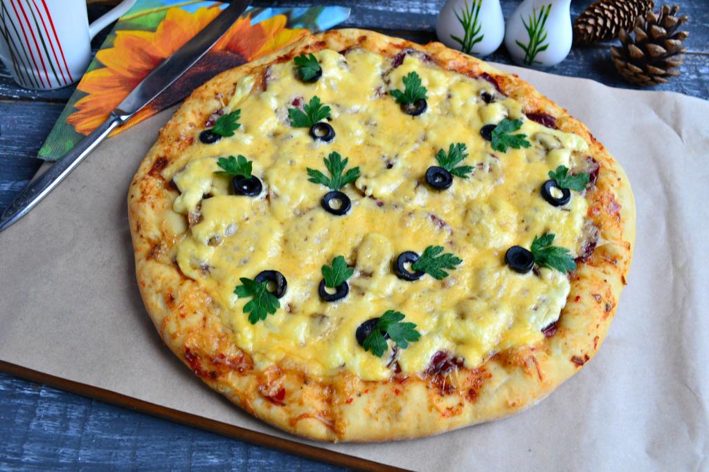 Любите ли вы пиццу? Скорее всего вы ответите положительно. И я предлагаю рецепт пиццы с грибами, сыром и колбасой, которую совсем не сложно приготовить в домашних условиях. Эта пицца очень вкусная, с тонким тестом и большим количеством начинки. Колбасу я использовала варено-копченую, можете брать любую, по своему вкусу. Попробуйте, всё просто и безумно вкусно!