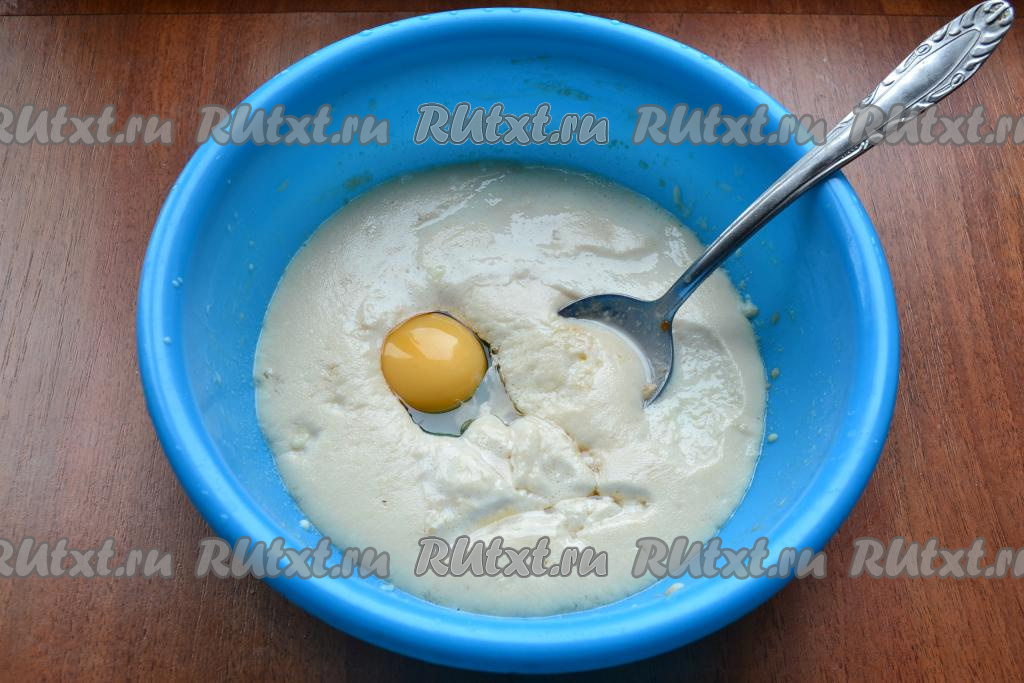 Затем в опару добавить соль и сырое яйцо, влить растительное масло, перемешать.