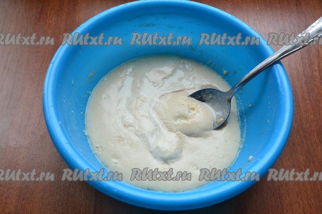 Всыпать оставшуюся муку, замешивать тесто вначале ложкой.