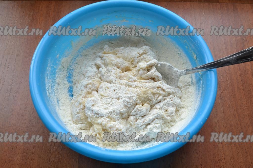 А затем замешивать руками. Замесить мягкое, но не липнущее тесто.