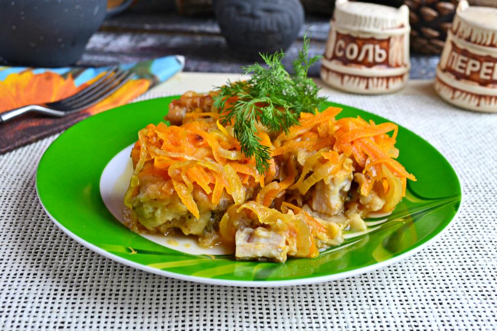 Хека, тушёного с овощами, разложить по тарелкам и с гарниром подать к столу. Сочетание рыбы, моркови и лука, - очень удачное, поэтому блюдо получается и аппетитным, и вкусным.