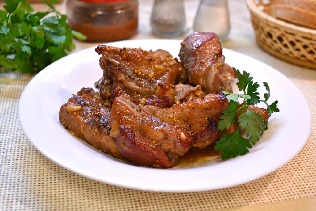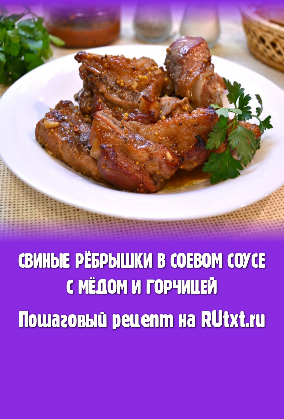 Невероятно вкусные и ароматные свиные рёбрышки достать из духовки и подать в горячем виде с гарниром к столу. Маринад из соевого соуса, мёда и горчицы сделал рёбрышки сочными и очень аппетитными, рекомендую приготовить мясное блюдо по этому рецепту!
