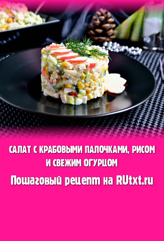 Очень вкусный, аппетитный салат, приготовленный с крабовыми палочками, рисом и свежим огурцом, можно подать в большом салатнике или порционно, выложив с помощью кулинарного кольца на тарелки.