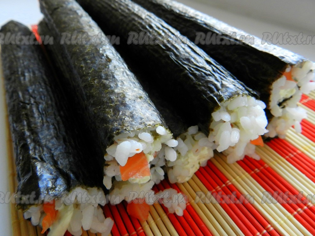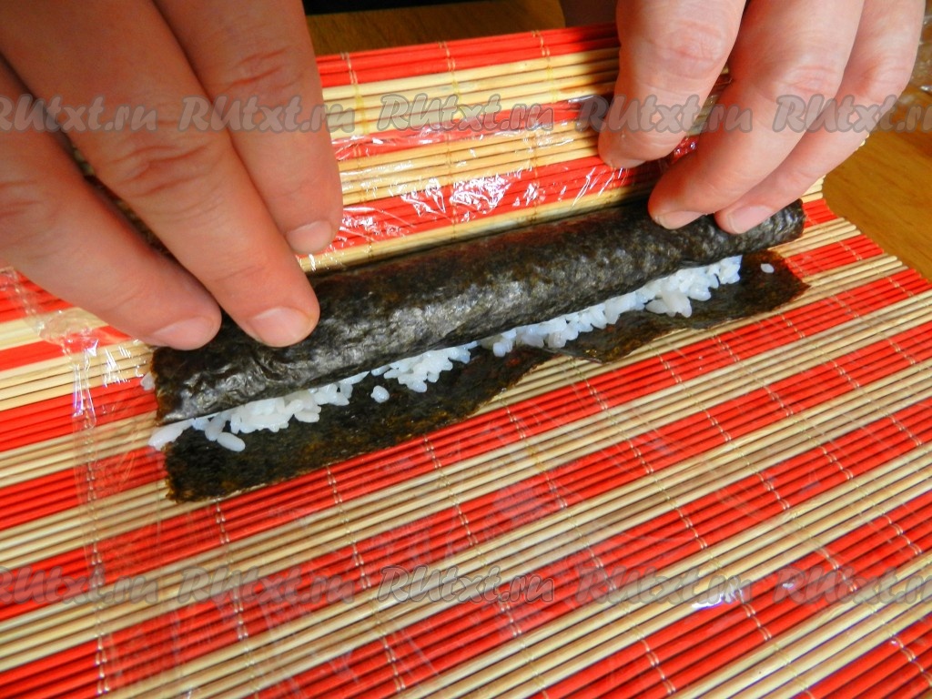 С помощью салфетки свернуть ролл довольно плотно.
