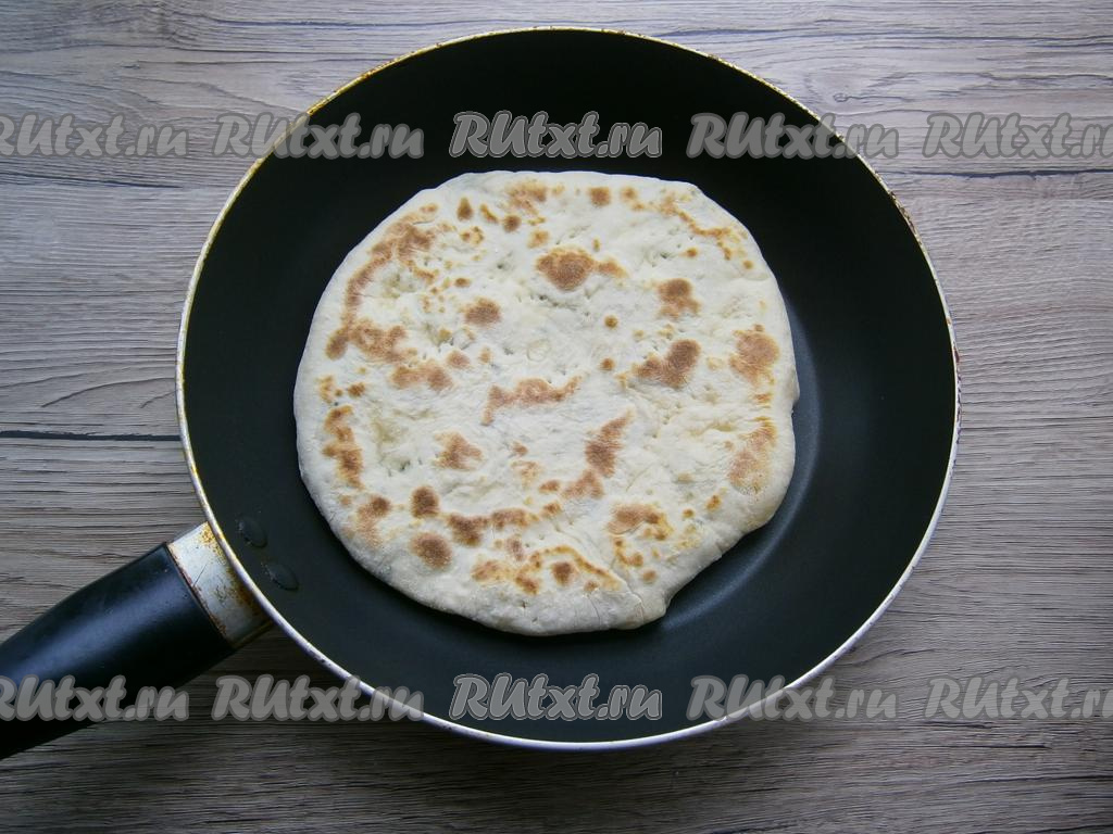 Хорошо разогреть сухую сковороду (смазывать сковородку маслом не нужно). Жарить каждую лепёшку на разогретой сухой сковороде на среднем огне до румяности с двух сторон. Лепёшки жарятся быстро (примерно по 1,5-2 минуты с каждой стороны).