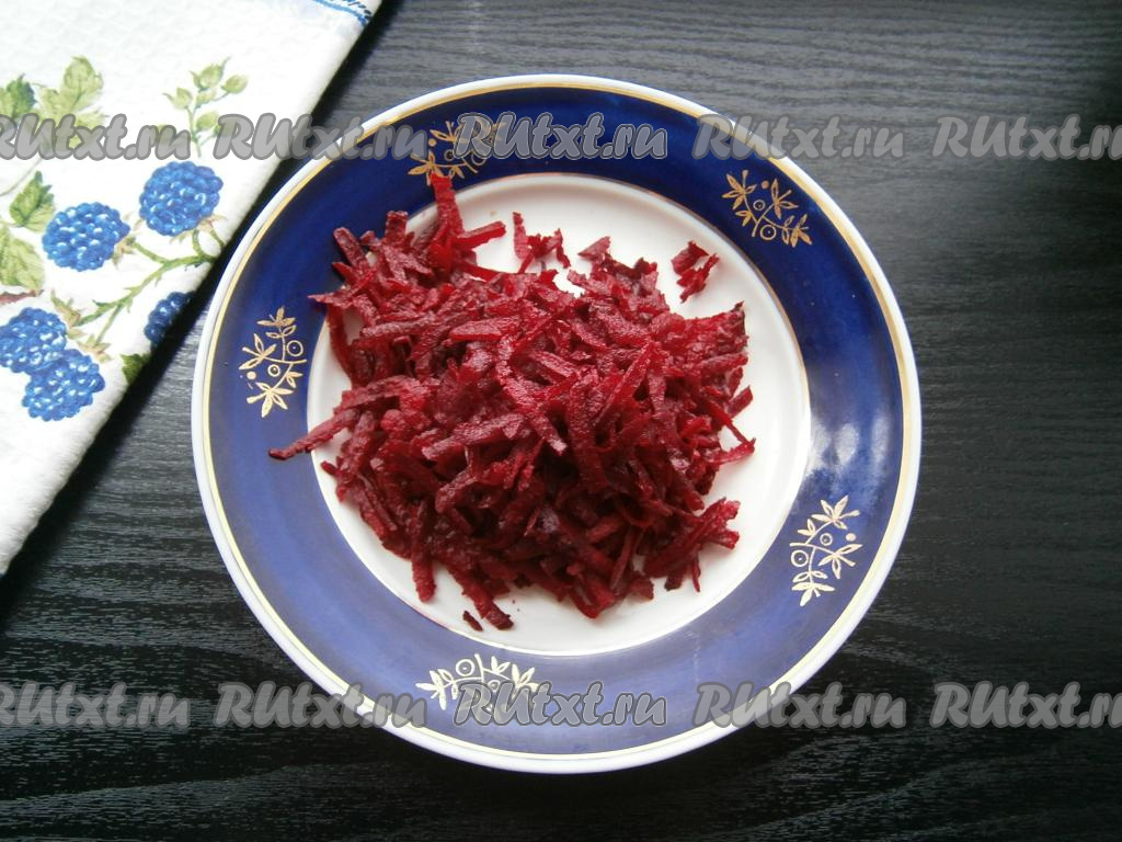 На крупной терке натереть свеклу.