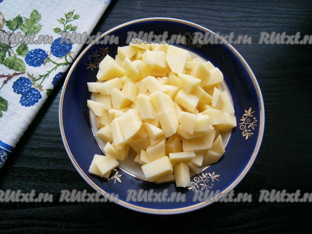 Картошку нарезать небольшими кубиками.