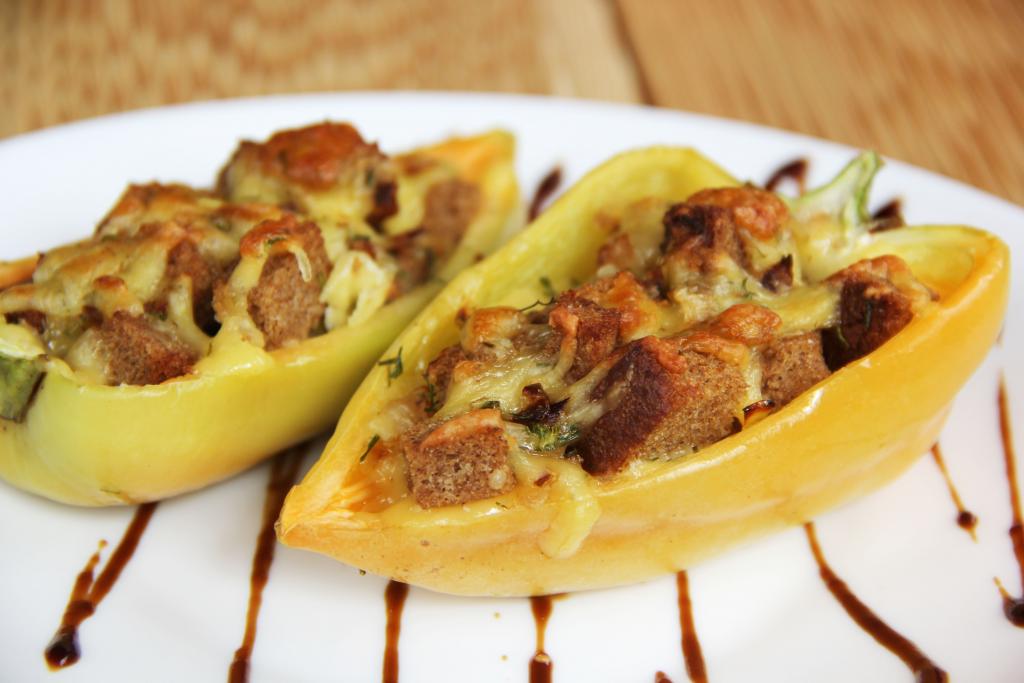 Болгарский перец можно запечь не только с мясной начинкой. Я недавно попробовала приготовить перец, фаршированный хлебом и сыром по этому рецепту. Получилось очень вкусное и сытное вегетарианское блюдо. Обязательно попробуйте! Перец, фаршированный начинкой, в состав которой не входит мясо, получается и сытным, и очень вкусным.
