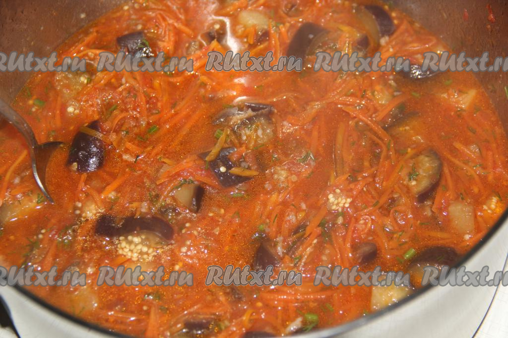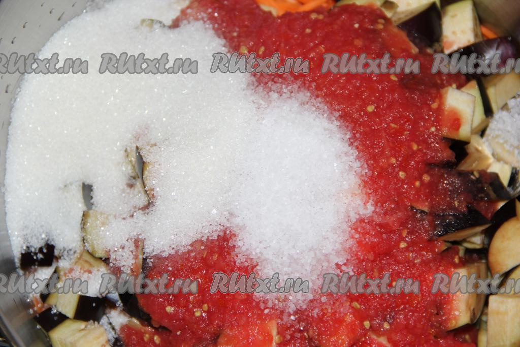Разложить горячий салат из баклажанов и помидоров по стерильным банкам.