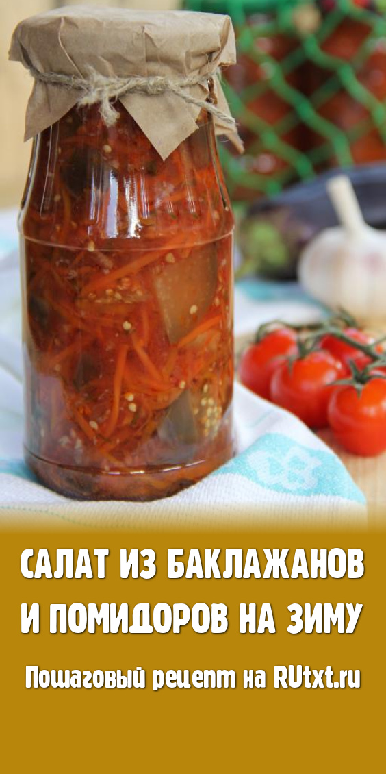 Закрыть салат прокипяченными крышками и, перевернув банки кверху дном, укутать в одеяло и оставить до полного остывания. Из этого количества овощей получается 5 банок салата объёмом 700-800 мл. Хранить салатик в тёмном прохладном месте. Салат из баклажанов и помидоров - отличная закуска! Как приятно открыть баночку такого салатика зимой и насладиться вкусной домашней заготовкой, сделанной своими руками.