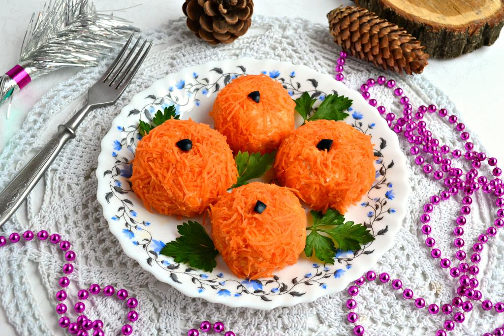 На Новый год мы стараемся приготовить самые красивые и оригинальные блюда. Одним из символов новогодних праздников являются мандарины. Поэтому я решила сформировать сырные шарики, покрыть их натёртой морковью и оформить в виде мандаринов. В результате получилась аппетитная, вкусная, оригинальная закуска "Мандаринки". Готовится это морковно-сырное блюдо очень просто, а на новогоднем столе выглядит замечательно, создавая атмосферу праздника!