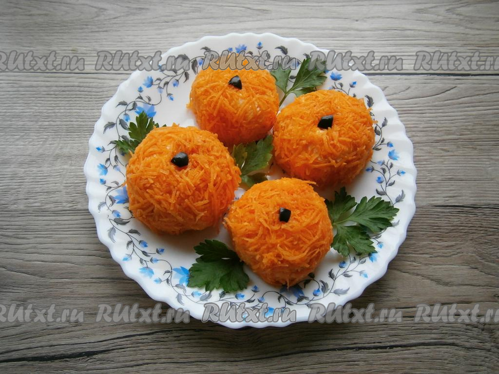 Яркую и оригинальную морковно-сырную закуску "Мандаринки" подать на праздничный стол. Особенно кстати она придётся к столу на Новый год. Вот так достаточно просто и быстро из сыра, яиц и моркови можно приготовить эффектное, вкусное и запоминающееся блюдо!
