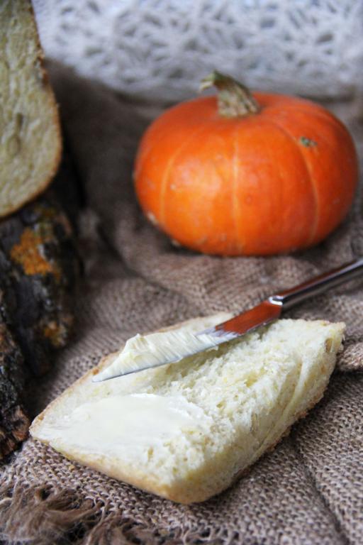 Готовый тыквенный хлеб слегка остудить, а затем достать из ведёрка хлебопечки.