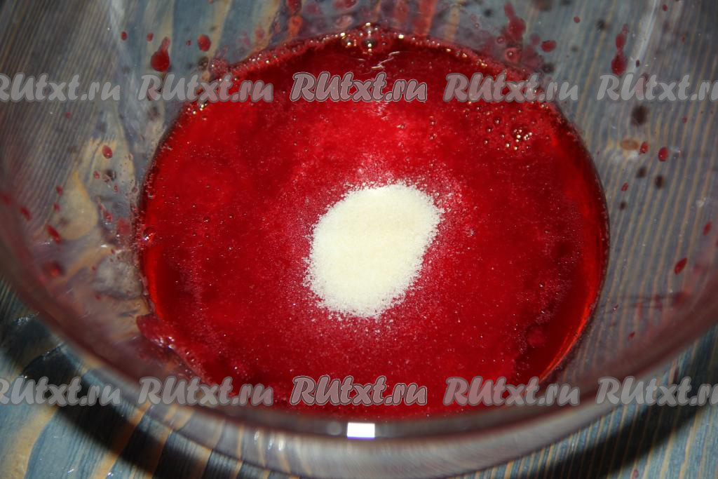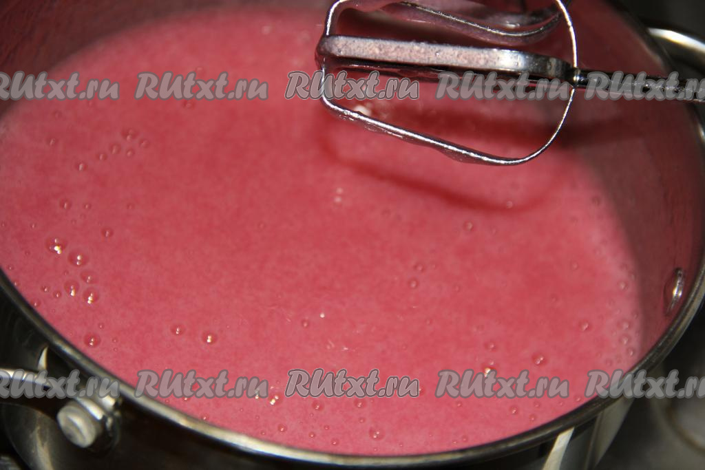 Добавить ягодный сок с желатином и ещё раз хорошо взбить в течение 2-3 минут.