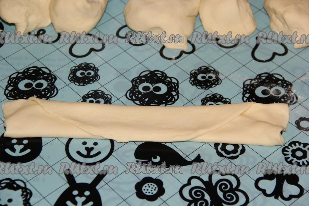 Подвернуть концы теста с двух сторон, чтобы получилась полоска шириной, примерно, 3 сантиметра, как на фото.