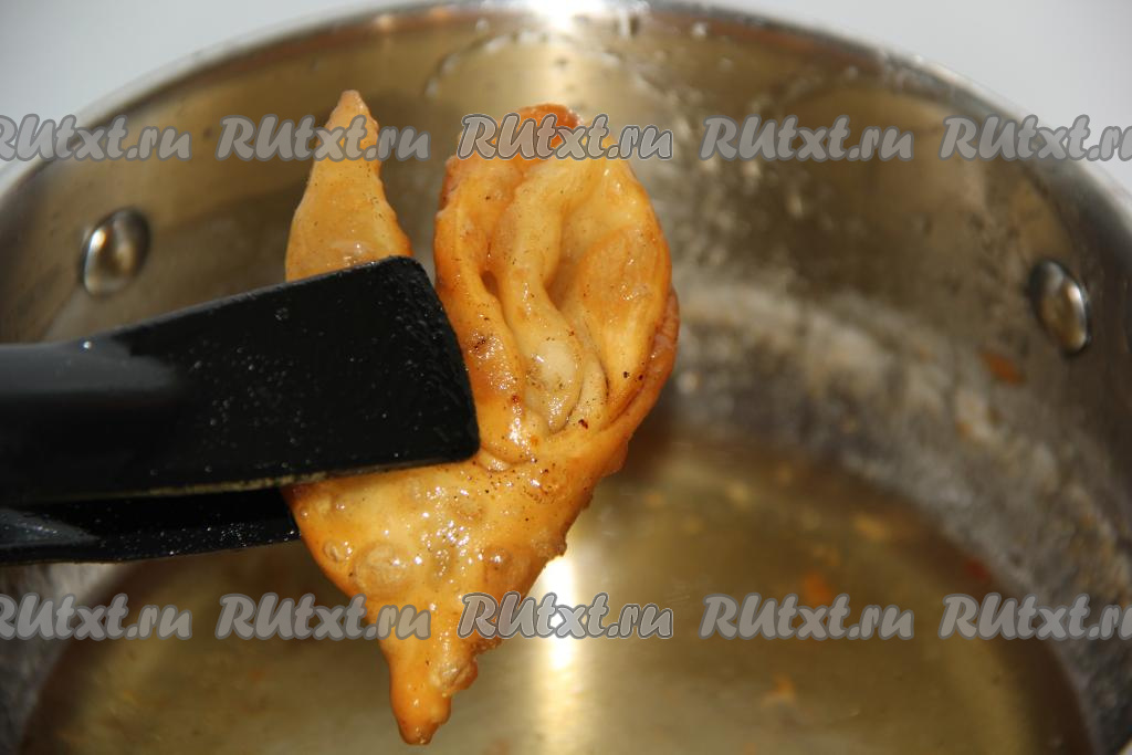 Жарить хворост на среднем огне до золотистого цвета со всех сторон.