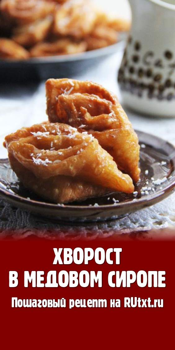 Готовый воздушный, нежный и вкусный хворост в медовом сиропе подать к столу. Перед подачей можно посыпать хворост дроблёными орехами, сахарной пудрой или кокосовой стружкой.