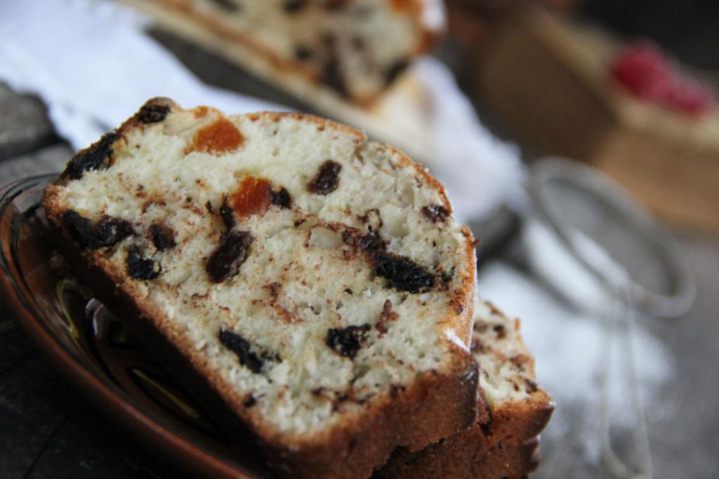 Готовый кекс с сухофруктами достать из духовки, дать остыть минут 5 в форме, а затем вынуть из формы, переложить на доску (или на тарелку), дать выпечке остыть. Перед подачей можно посыпать сахарной пудрой. Благодаря тому, что тесто замешивалось на кефире, кекс получился нежным, мягким, воздушным. А большое количество сухофруктов сделало его очень аппетитным и вкусным. Посмотрите, как хорош этот кекс в разрезе!