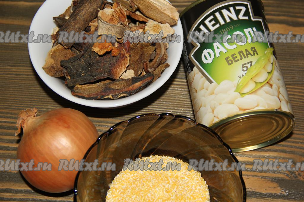Суп с сушеными грибами получается очень ароматным и наваристым. Я готовлю суп с добавлением фасоли и кукурузной крупы, поэтому блюдо получается особенно вкусным и сытным. Фасоль можно взять консервированную или предварительно отваренную. Суп с фасолью и сушеными грибами получается очень вкусным и сытным, попробуйте!