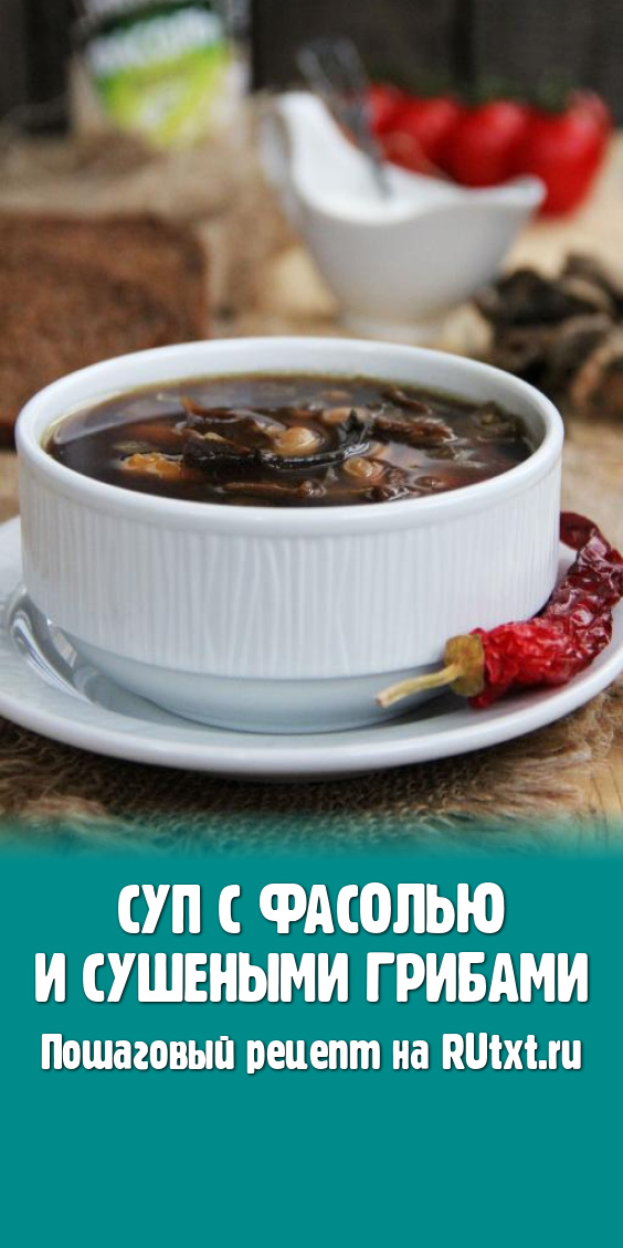 Вот такой аппетитный, вкусный и сытный суп с фасолью и сушеными грибами получается. Подать к столу со сметаной.