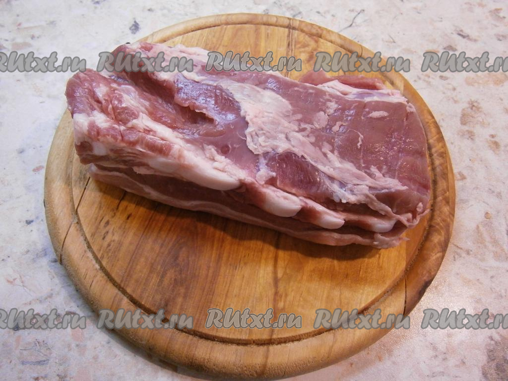 Свиную грудинку вымыть и обсушить бумажными полотенцами.