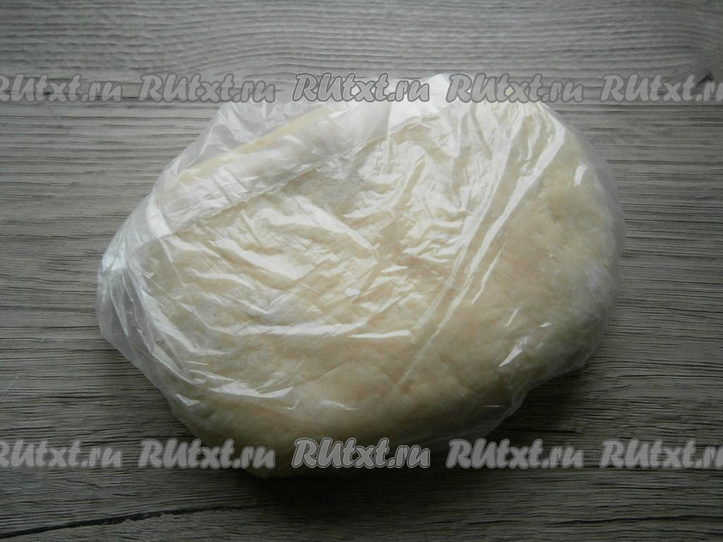 Далее всыпать еще 50 грамм муки, тесто замесить и собрать в ком. По консистенции тесто будет очень нежным, мягким, но хорошо держащим форму. Поместить тесто в целлофановый пакет и отправить на 2-3 часа в холодильник.