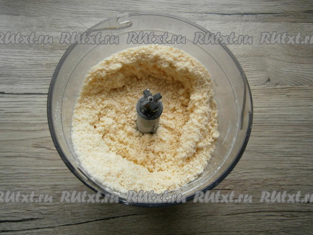 Измельчить муку с маслом до состояния мелкой крошки.
