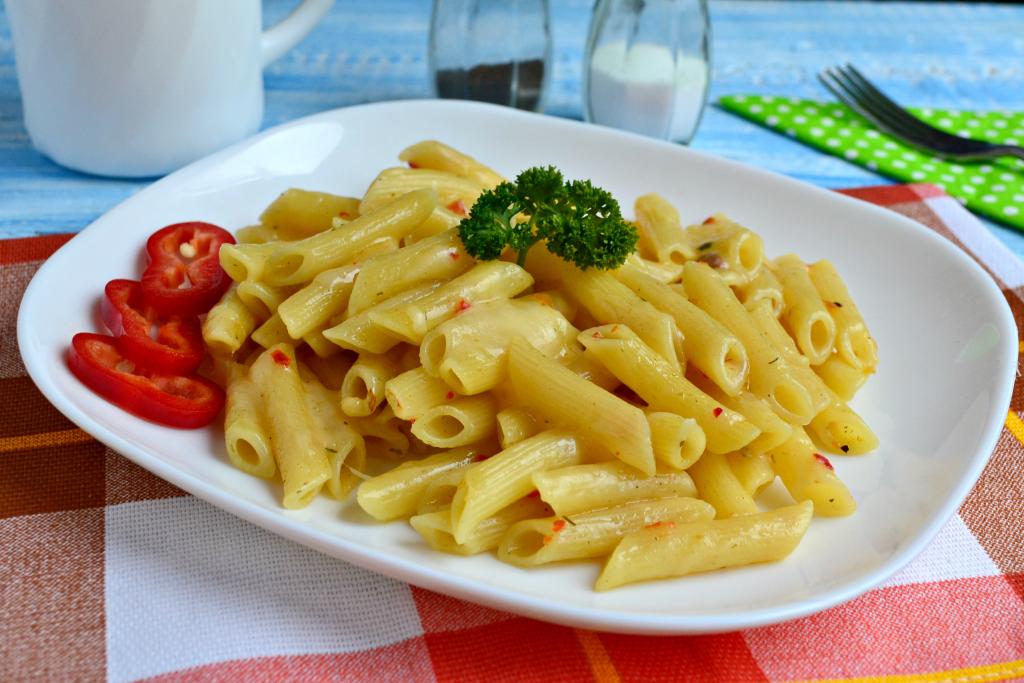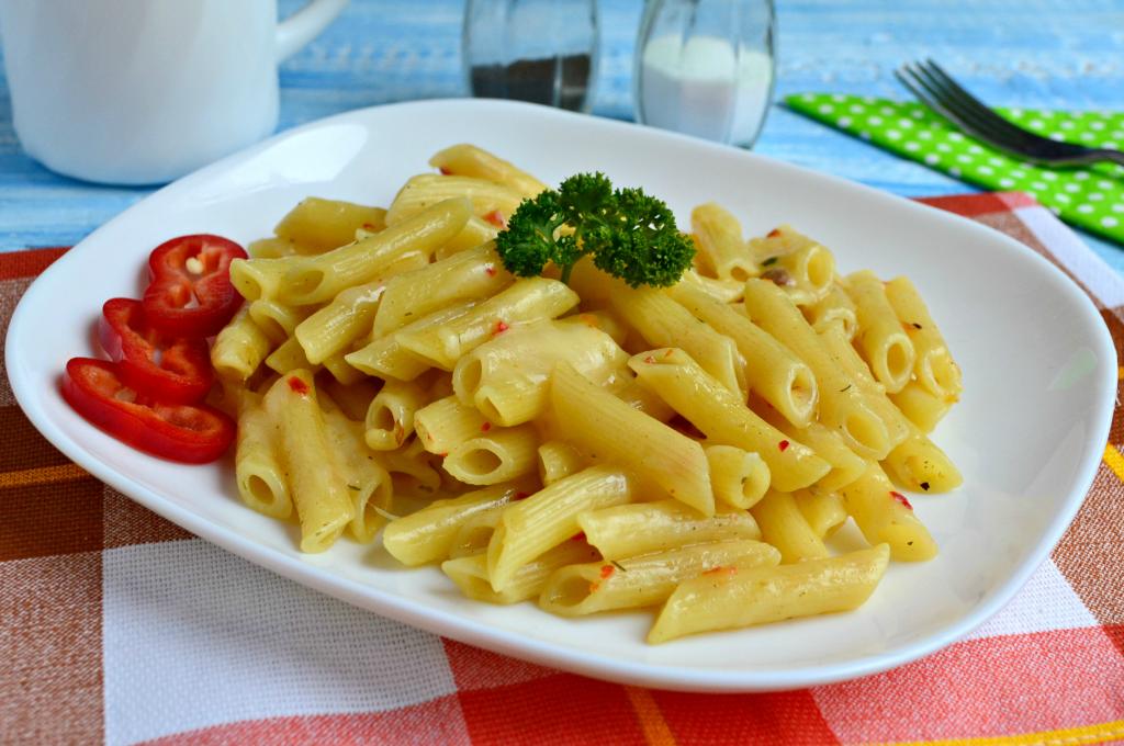 Горячие макароны с сыром сразу переложить со сковороды на тарелку и подать к столу. Блюдо, приготовленное по этому простому рецепту, получается очень вкусным, попробуйте!