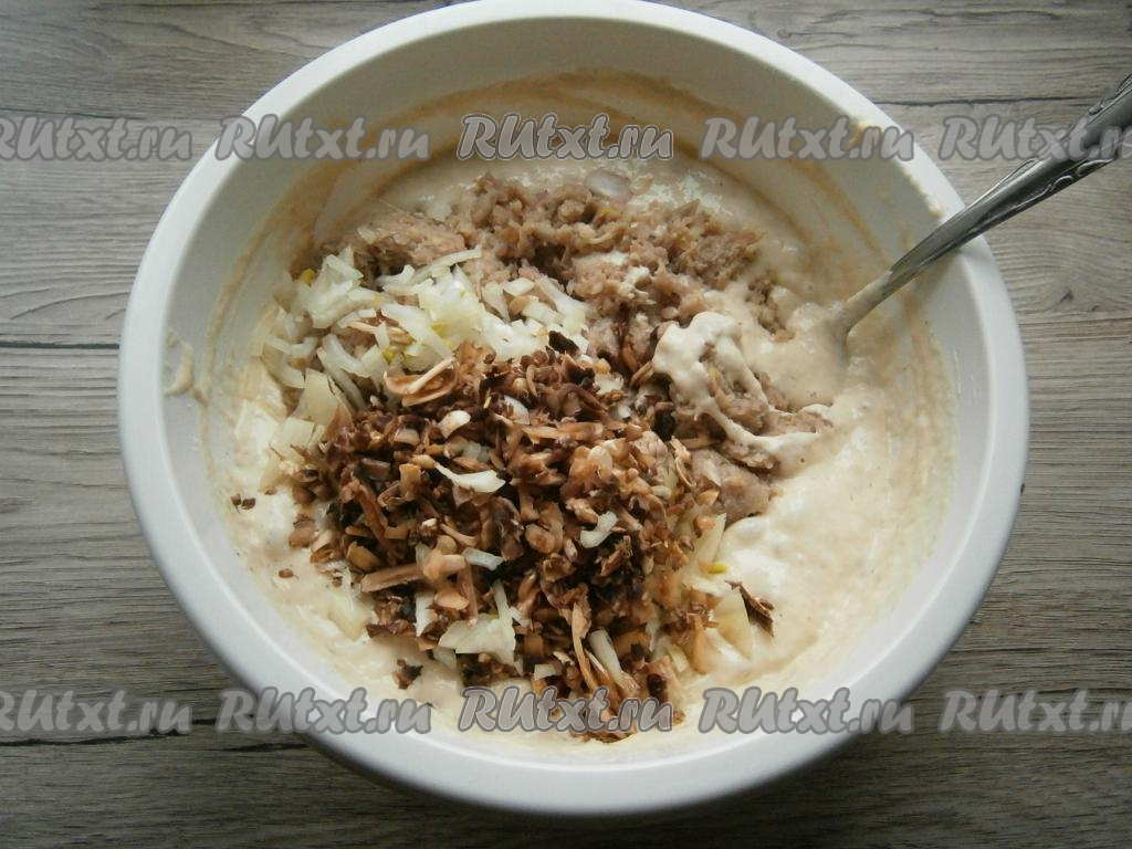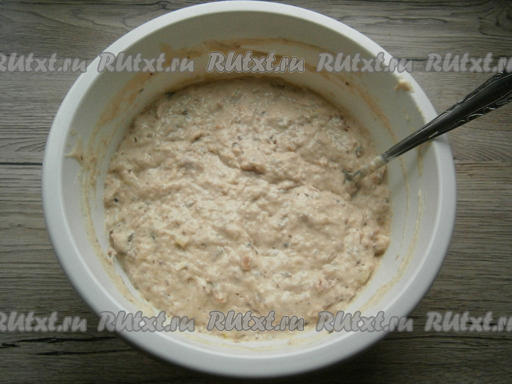 Замесить тесто, которое должно быть чуть гуще, чем на оладьи.