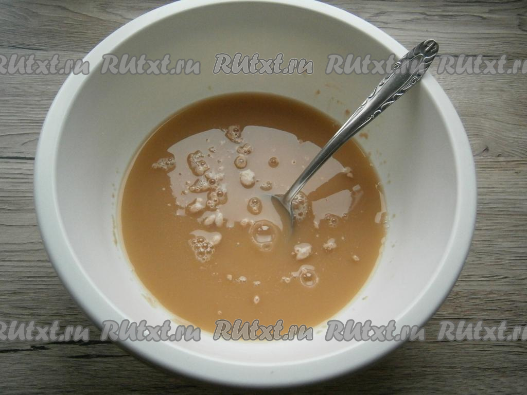 В смесь воды и дрожжей влить соевый соус, перемешать.