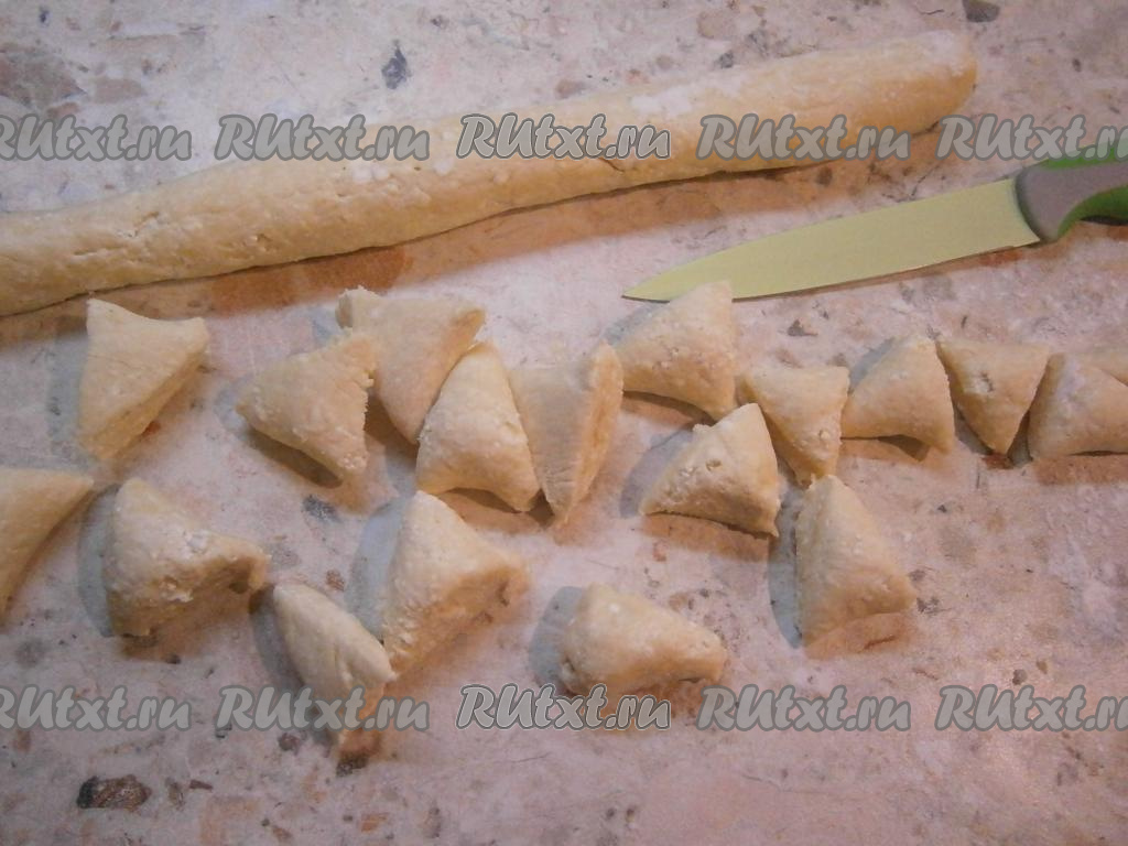 Затем нарезать жгуты на небольшие кусочки. Я решила нарезать жгуты наискось в разные стороны, чтобы получились треугольнички (как на фото).