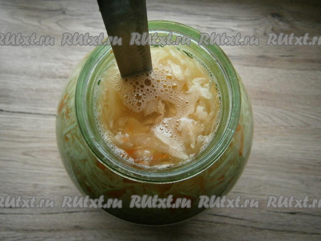 Капусту следует так уплотнить, чтобы на поверхности появился капустный сок.