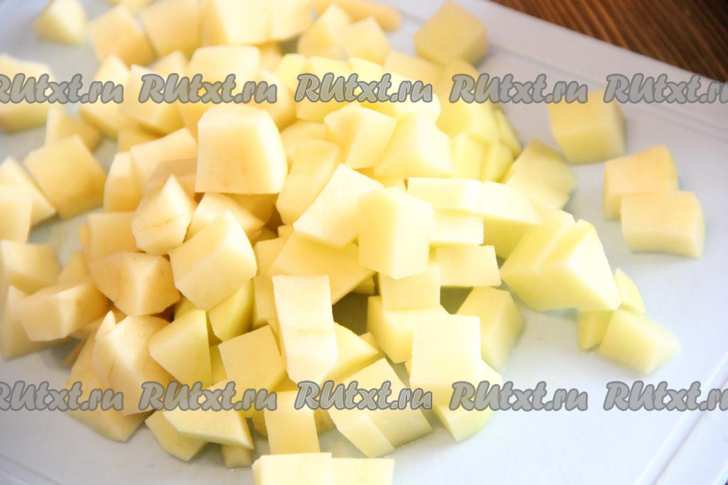 В кастрюлю с грибами выложить нарезанный картофель и варить на небольшом огне 15 минут.
